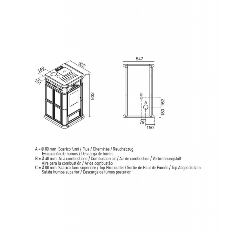 - Tuyau de sortie des fumées : 80 mm
