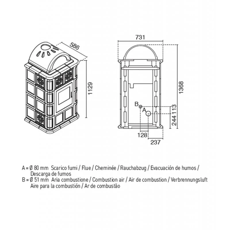 - Tuyau de sortie des fumées (mm) : 80