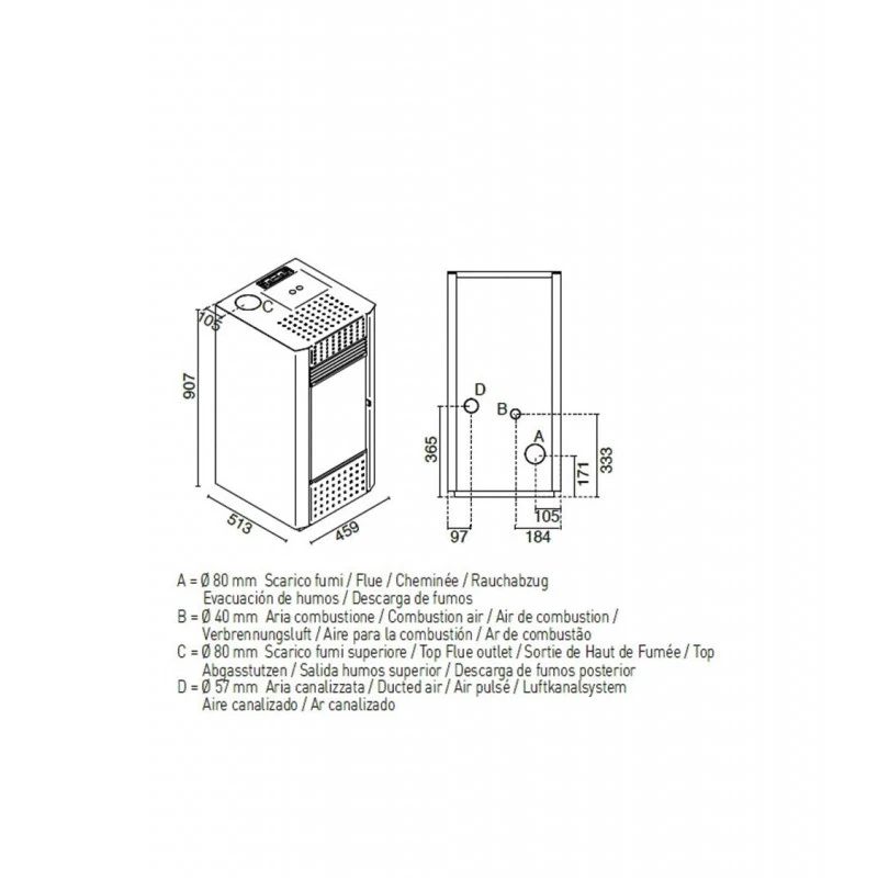 - Tuyau de sortie des fumées (mm) : 80