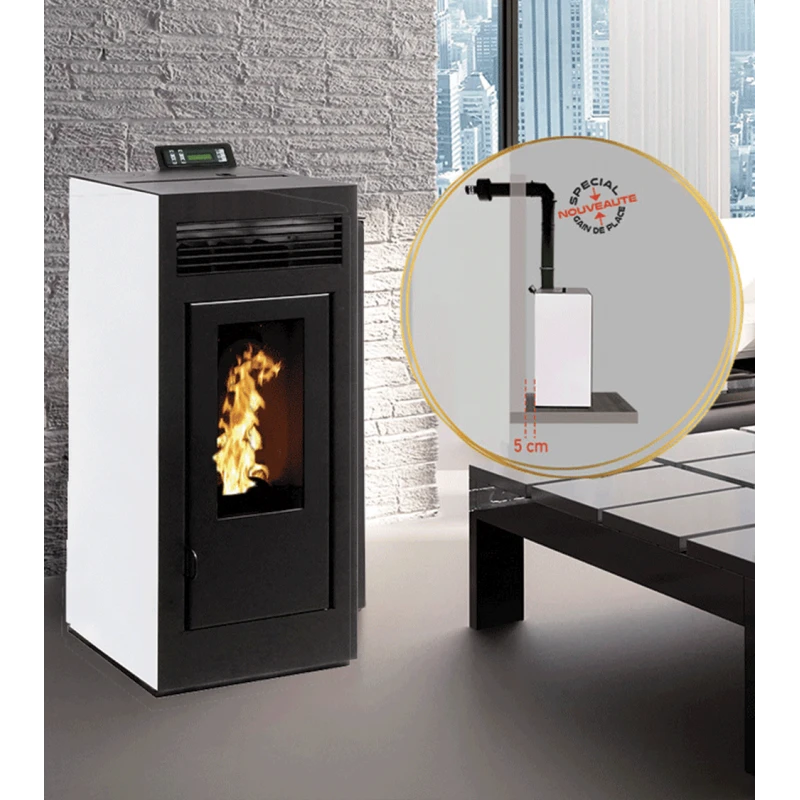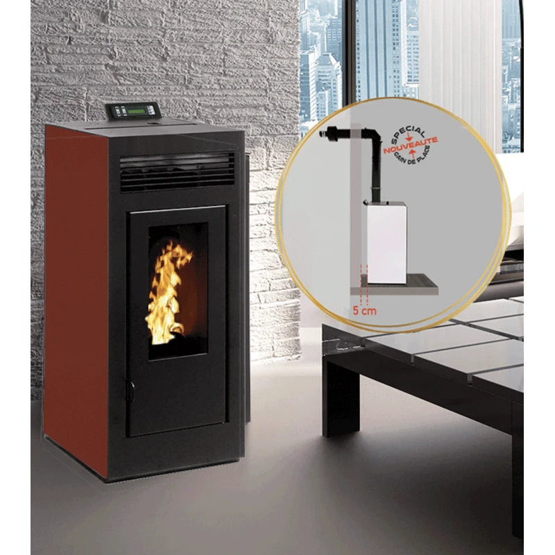 Le MARINA concentrique 11 KW étanche de fabrication italienne a un très haut rendement (96.30%). Ce poêle présente une sortie par les fumées par le dessus au lieu d’une sortie par l’arrière. Cela permet d’installer le poêle au plus proche du mur. Option en wifi compatible uniquement avec le réseau 2.4ghz