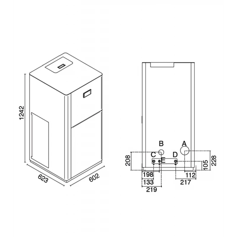 - Consommation de pellets: max 5,1 kg/h – min 1,1 kg/h
