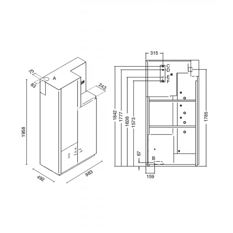 - Mesures: L 98,3 x P 49,2 x H 195,8 cm