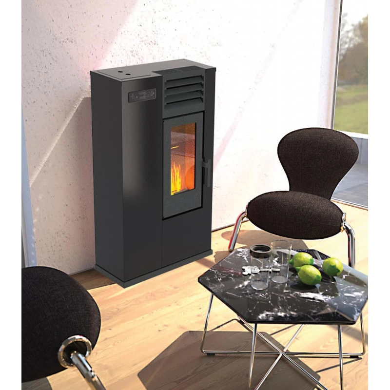 Le Poêle à granulés Susy Slim de chez Punto Fuoco est une version mince de seulement 23 cm, pour ceux qui ont besoin de le placer dans une partie étroite de leur appartement.